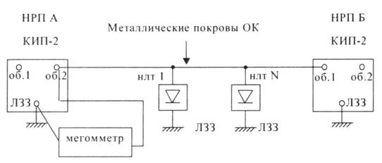 -проключение на всех линейных КИП металлических покровов длин кабеля;