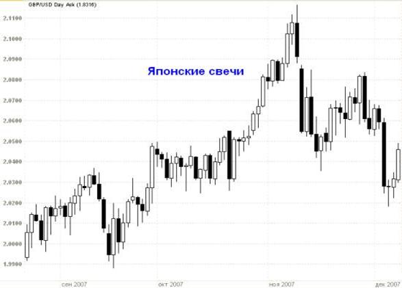 Основа технического анализа – это график. Существует три типа графиков движения рынка, на основании которых строится технический анализ: график движения цены, объёма торговли и открытого интереса, называемые обычно чартами. Колебания цены записываются человечеством уже многие годы, и поэтому типов этих чартов существует довольно много. Основные - это линейный, гистограмма и японские свечи.