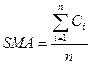 Простое скользящее среднее. (SMA). Простое, или арифметическое, скользящее среднее рассчитывается путём суммирования цен закрытия за определённое число единичных периодов с последующим делением суммы на число периодов. В результате получается средняя цена за данный временной интервал и ценам каждого из дней присваивается равный вес.