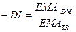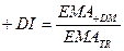 После этого рассчитываются экспоненциальные скользящие средние значений +DM, -DM, TR и вычисляются индикаторы положительного направления (+DI) и отрицательного направления (-DI):