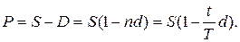 Следует заметить, что дисконтирование может быть связано и с проведением кредитной операции. В таком случае проценты начисляются в начале интервала начисления и заемщик получает сумму Р за вычетом процентных денег D из суммы кредита S, подлежащей возврату. В таком случае при проведении операции по простой учетной ставке d следует пользоваться такой формулой: