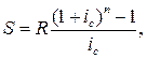 • наращенная будущая сумма ренты S, включающая все члены потока платежей с процентами на дату последней выплаты;