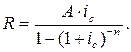Эту формулу можно использовать, когда заемщик берет кредит на условиях его погашения в будущем равными платежами ежегодно: