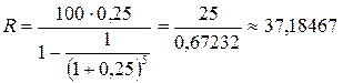 Т. е. заемщик в конце каждого года будет выплачивать сумму 37,18467 тыс. рублей в течение пяти лет.
