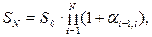 Для процентов, начисленных без учета капитализации, обозначим iα ставку процентов, учитывающую инфляцию, тогда наращенную сумму можно определить по формуле: