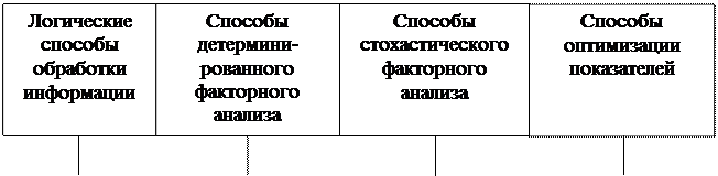 Для изучения влияния факторов на результаты деятельности и подсчета резервовв анализе применяются такие способы, как цепные подстановки, абсолютные и относительные разницы, интегральный метод, корреляционный, компонентный, методы линейного, выпуклого программирования, теория массового обслуживания, теория игр, исследования операций, теория нечетких множеств и т.д. Применение тех или иных способов зависит от цели и глубины анализа, объекта исследования, технических возможностей выполнения расчетов т.д.