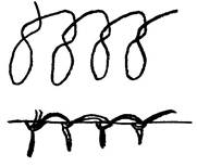 | Ручной петлеобразный | | Стачивающая: n=3-5 стежков в 10мм строчки | Для постоянного соединения деталей в местах, где затруднено выполнение машинной строчки. |