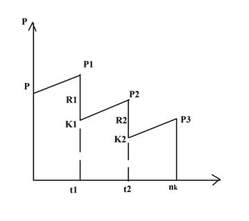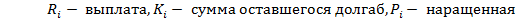 Замечание: если первый платеж (R1) оказывается меньше, чем проценты, начисленные за данный период, то, как платеж он не считается, а его сумма добавляется к следующему платежу.