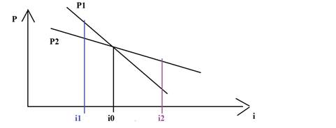 В зависимости от ставки сравнения: i0 – эквивалентная ставка; если i1<i0, то P1>P2; если i2>i0, то P1<P2.