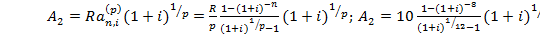 2. Ежемесячная рента пренумерандо, n=8 лет, ежемесячный платеж – 10 т.р., отложена на три года.