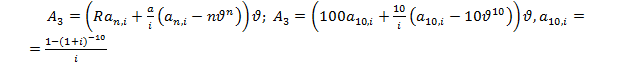3. Ежегодная рента с первым платежом 100 т.р., увеличивающимся на 10 т.р. ежегодно, срок – 10 лет, отложена на 1 год.