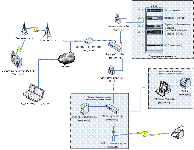 б) техническую архитектуру – состав и взаимодействие аппаратных средств, используемых (даже частично) для обработки информационных активов, подлежащих защите. Схему (Рис.2) и таблицу описания технических характеристик;