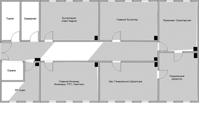 Рис.4. Расположение камер охранного видеонаблюдения.