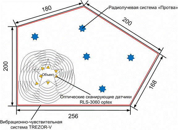 Рис. 6. Расположение систем контроля периметра (вариант 1)