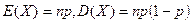 – дискретная случайная величина, распределенная по биномиальному закону с параметрами