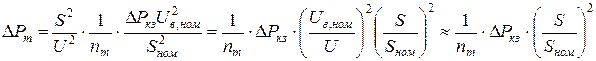 Потери мощности можно также выразить через каталожные данные трансформаторов: