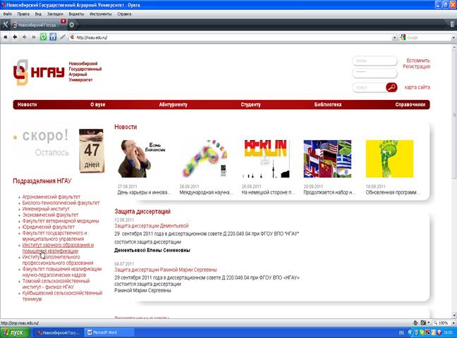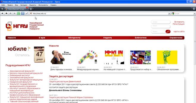 1. Входим на сайт Новосибирского государственного аграрного университета (www.nsau.edu.ru):