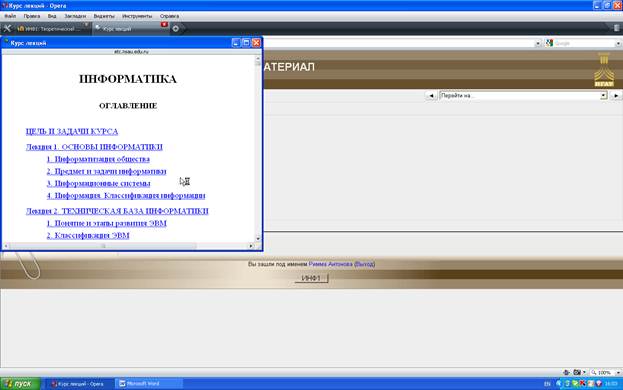 7. Заходим в Теоретический материал, выбираем, Например лекции: