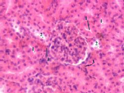 | а) На обоих снимках видны канальцы коркового вещества: проксимальные извитые (1) и дистальные извитые (2). б) Они вполне соответствуют вышеприведённому описанию. |