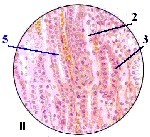 | Три вида канальцев | В мозговом веществе, как мы уже знаем, присутствуют, в основном, канальцы 3-х видов (если не учитывать короткие проксимальные прямые канальцы): а-б) компоненты петли Генле – тонкие канальцы (1) и дистальные прямые канальцы (2), в) а также собирательные трубочки (3). | Рисунки с препарата – почка; окраска гематоксилин-эозином. II. Мозговое вещество Полный размер |