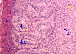 | 2. Под капсулой находится клубочковая зона (4) с характерными аркообразными скоплениями клеток – клубочками (4А). | ||