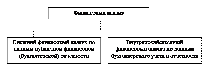 Финансовый анализ является частью общего экономического анализа организации, а также частью общего, полного анализа хозяйственной деятельности, который состоит из двух тесно взаимосвязанных разделов: внешнего финансового анализа и внутрихозяйственного управленческого анализа. Приблизительная схема финансового анализа представлена на рисунке 1