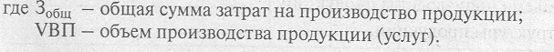 Широко используемый на практике обобщающий показатель - затраты на один рубль товарной (реализованной) продукции - определяется делением суммы затрат на производство товарной продукции на ее объем: