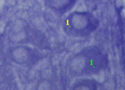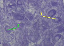 а) На снимках – нейросекреторные клетки (1) супраоптического ядра гипоталамуса.