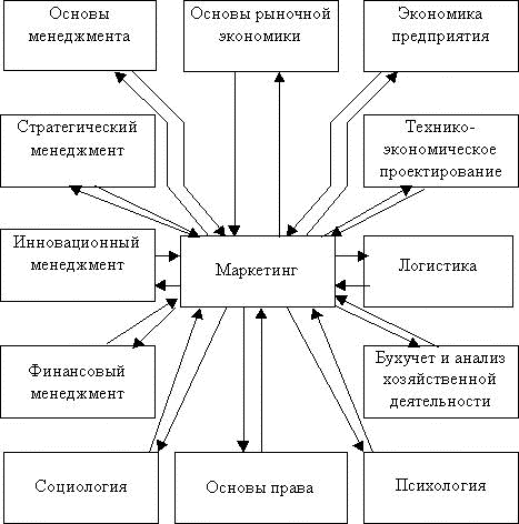 Рис.1. Основные взаимосвязи курса “Маркетинг” с другими дисциплинами.