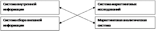 Комплексное и последовательное использование разных источников позволяет сформулировать систему маркетинговой информации, включающую внутреннюю информацию, внешнюю информацию, банки моделей, методов обработки и анализа данных.