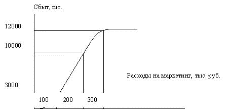 Функция реакции сбыта – прогноз вероятного объема продаж в течение определенного отрезка времени при разных условиях затрат на один или несколько элементов комплекса маркетинга (рис.19).