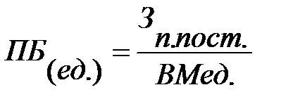 ПБ (ед.) =Зпр.пост./ВМед.=2800/(65-20)=62,22 тыс. шт.
