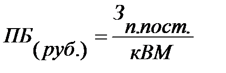 ПБ (руб.) =Зпр.пост./кВМ=2800/0,692=4044,44 тыс. руб.