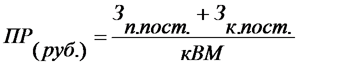 ПР (руб.) =(Зпр.пост.+Зкосв.пост.)/кВМ=(2800+1200)/0,692=5777,78 тыс. руб.