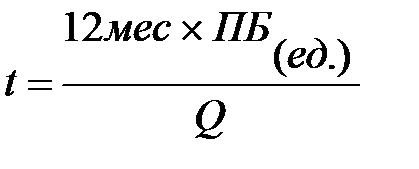 t=(12мес.*ПБ (ед.))/Q=(12*62,22)/116=6,44 мес.