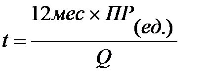 t=(12мес.*ПР (ед.))/Q=(12*88,89)/116=9,2 мес.