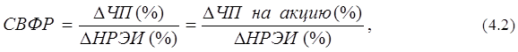 Силу воздействия финансового рычага может характеризовать и отношение процентного изменения чистой прибыли к процентному изменению нетто-результата эксплуатации инвестиций (НРЭИ).