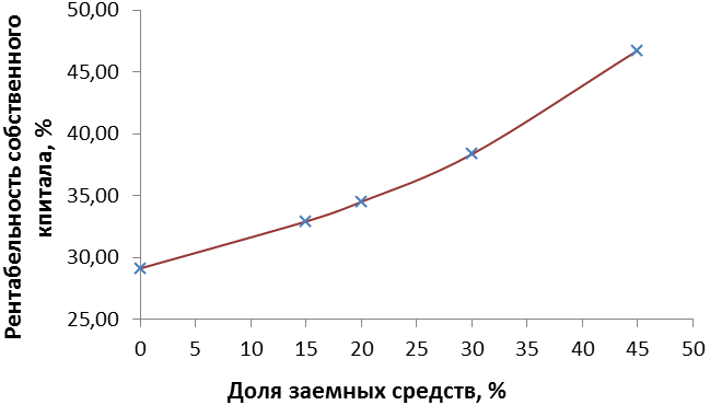 Рисунок 2.9 – Зависимость рентабельности собственного капитала от структуры капитала
