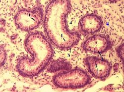 | 2,а. Препарат - придаток яичка. Окраска гематоксилин-эозином.