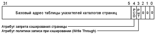 | PCD (Page Cache Disable) *) | Этот атрибут запрещает кэширование памяти для обслуживаемых страниц или таблиц. (Атрибут действителен, начиная с процессоров i486). | |