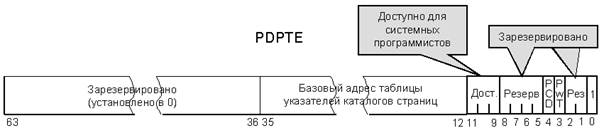 Рисунок 1.17 – Структура 64-битного элемента таблицы указателей на каталоги для режима PAE