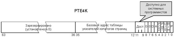 Биты 9 – 11 во всех элементах таблиц в режиме расширения физического адреса PAE доступны для программного использования. (Если сброшен флаг присутствия Р, до для программного использования доступны биты с 1 по 63.)