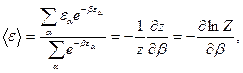 С помощью статистической суммы Z можно формализовать вычисление среднего значения энергии и ее дисперсии: