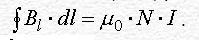 Циркуляция вектора В по замкнутому контуру, совпадающему с одной из линий магнитной индукции, охватывающему все N витков, согласно равна: