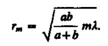 для заданных значений а, b и l (m = 0,2,4,... для прозрачных и m = 1, 3, 5,... для непрозрачных колец). Если поместить зонную пластинку в строго определенном месте (на расстоянии а от точечного источника и на расстоянии b от точки наблюдения на линии, соединяющей эти две точки), то для света длиной волны l она перекроет четные зоны и оставит свободными нечетные начиная с центральной. В результате этого результирующая амплитуда A = A1 + A3 + A5 +... должна быть больше, чем при полностью открытом волновом фронте. Опыт подтверждает эти выводы: зонная пластинка увеличивает освещенность в точке М, действуя подобно собирающей линзе.