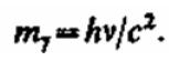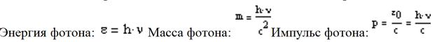 Согласно гипотезе световых квантов Эйнштейна, свет испускается, поглощается и распространяется дискретными порциями (квантами), названными фотонами. Энергия фотона E0=hv. Его масса находится из закона взаимосвязи массы и энергии