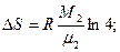 3.6. В двух сосудах одного и того же объема находятся различные идеальные газы. Масса газа в первом сосуде М1, во втором М2, давления газов и их температуры одинаковы. Сосуды соединили друг с другом и начался процесс диффузии. Определить суммарное изменение ∆S энтропии рассматриваемой системы, если относительная молекулярная масса первого газа μ1, а второго μ2.