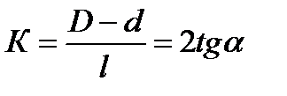 При измерении конусов углы при вершинах характеризуется конусностью K – отношением разности диаметров в двух поперечных сечениях конуса к расстоянию между ними:
