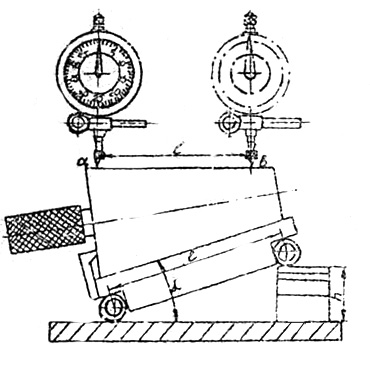 Отклонение угла от номинального значения определяют по разности показаний в сечениях а и b, отнесенной к расстоянию l.