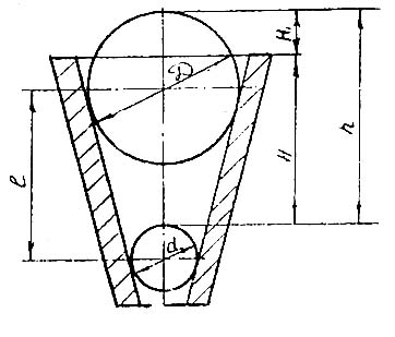 Диаметр шариков должен быть аттестован на оптиметре. Величины H и h изменяются при помощи штангенглубиномеров.